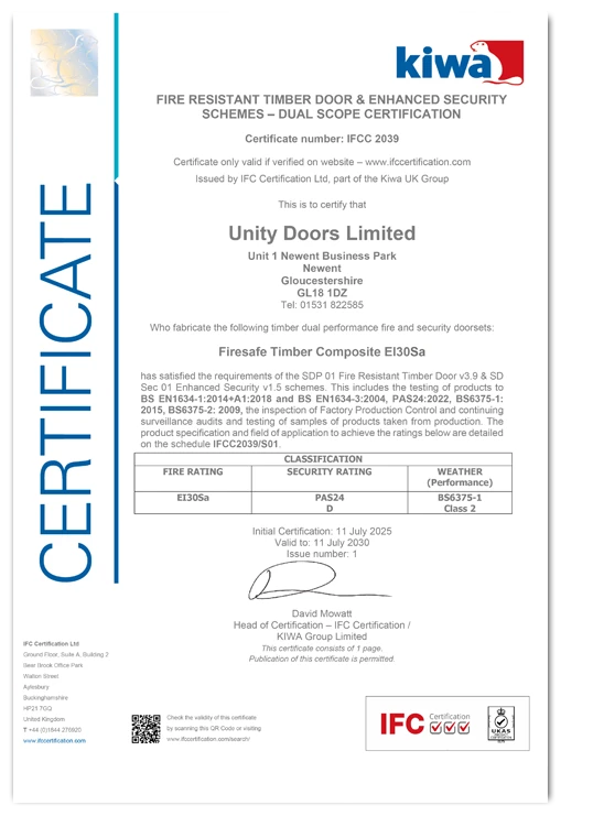 Unity Doors Ltd Enhanced Security PAS24 Certification
