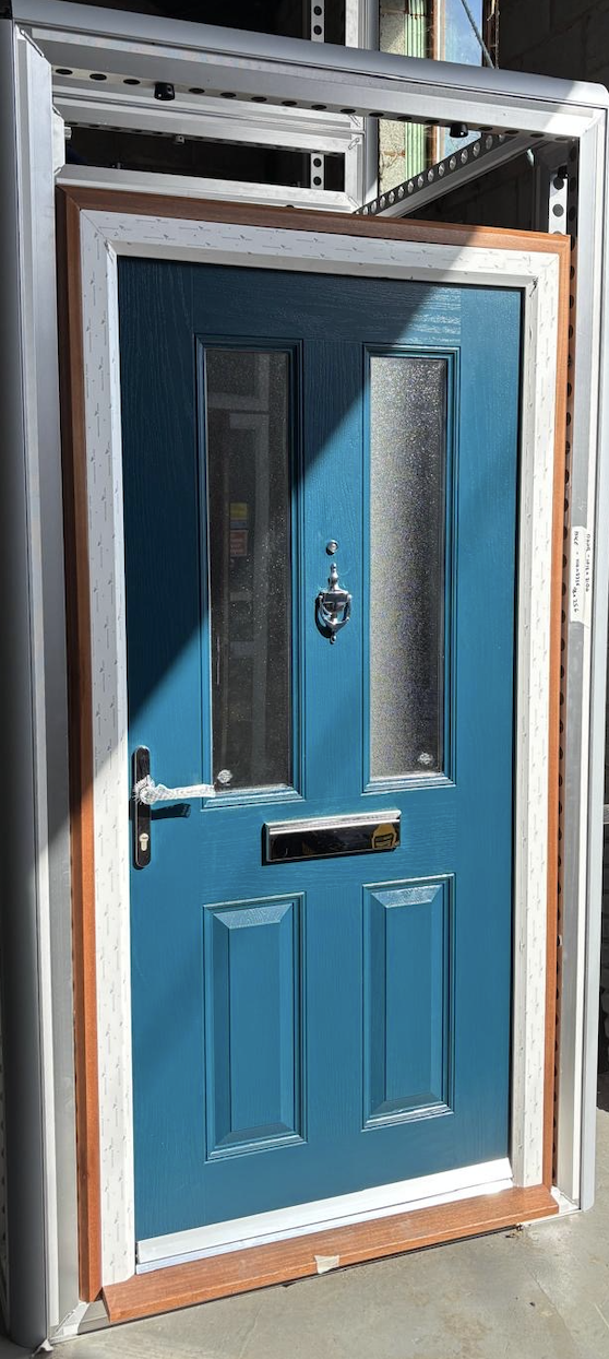 Triple certified top and sidelight fire doorset. 44mm Regency FD30 timber core, PAS24 2016 composite fire doorset 39mm Strebord solid timber core with hardwood subframe and SMC external skin and PVC internal skin.