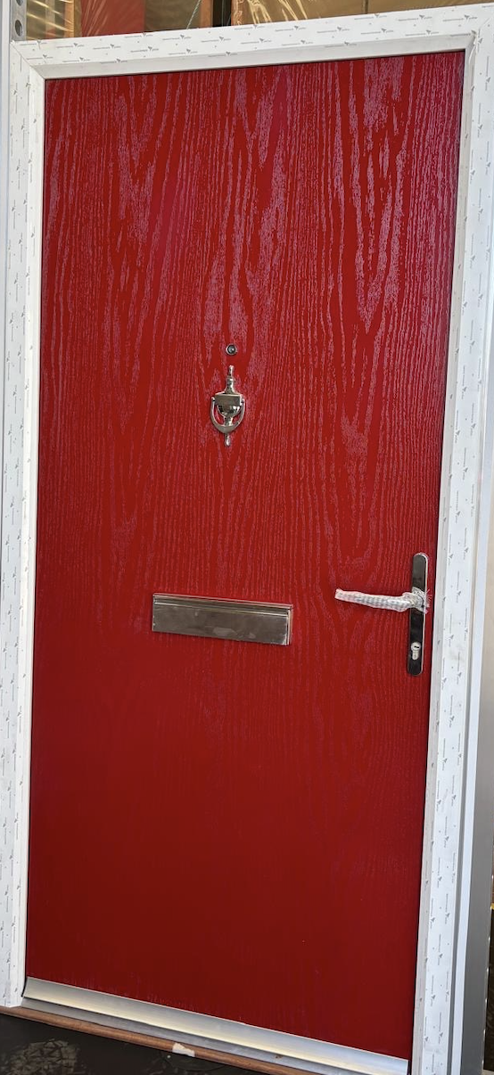 An operational – 44mm Windsor Style Timber core composite fire doorset 39mm Strebord solid timber core with hardwood subframe and SMC external skin and PVC internal skin.